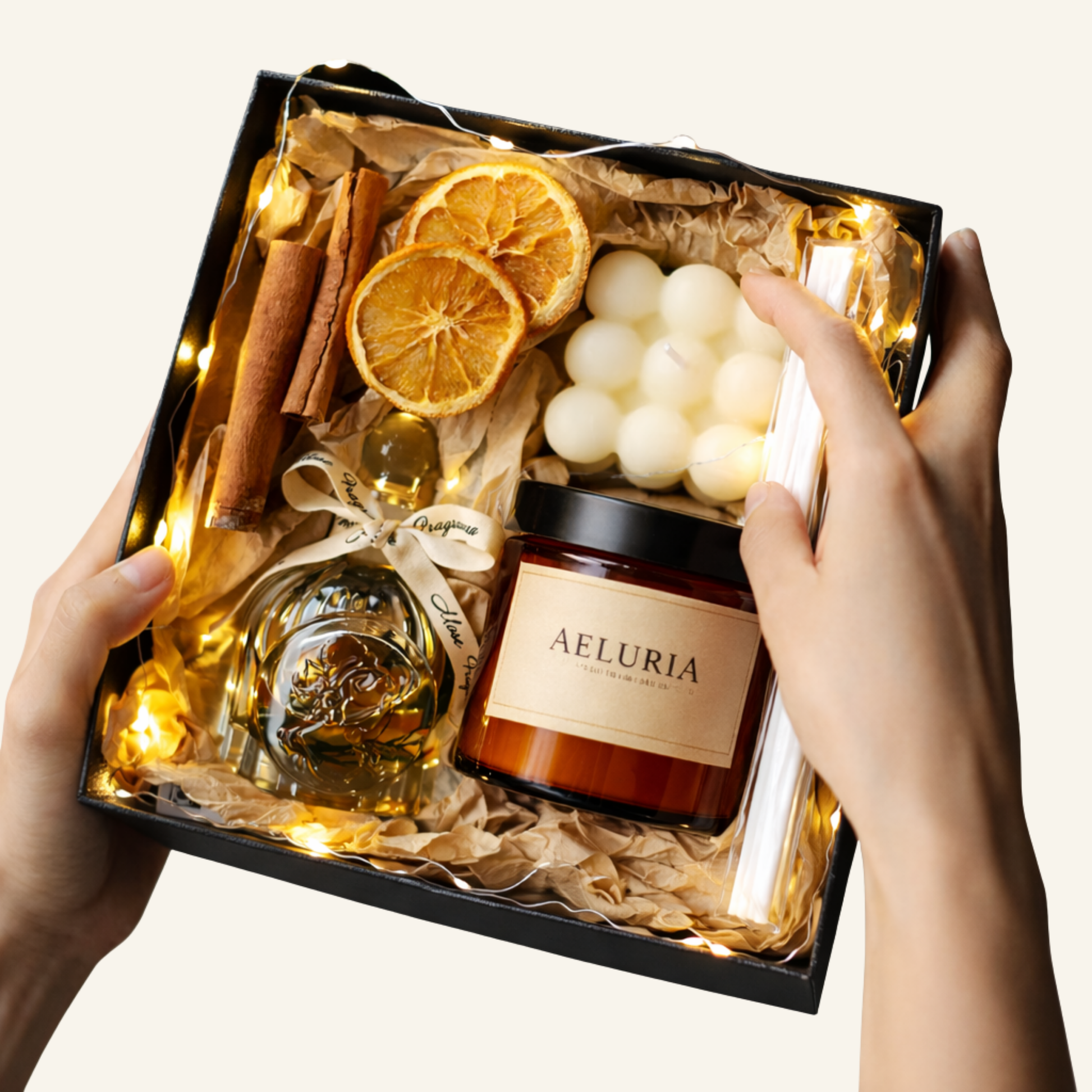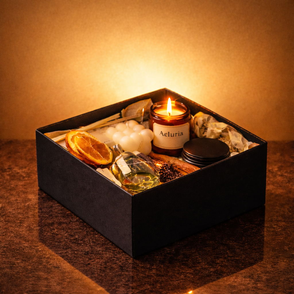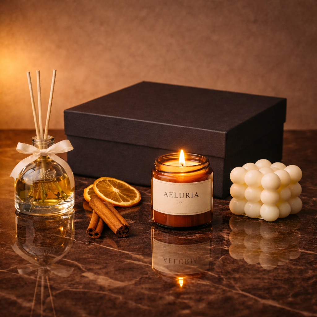 Aeluria Opus is a complete set designed to bring calm, warmth, and care - for someone you love or for yourself. Each element designed to soften interiors with fragrance, glow, and understated calm.